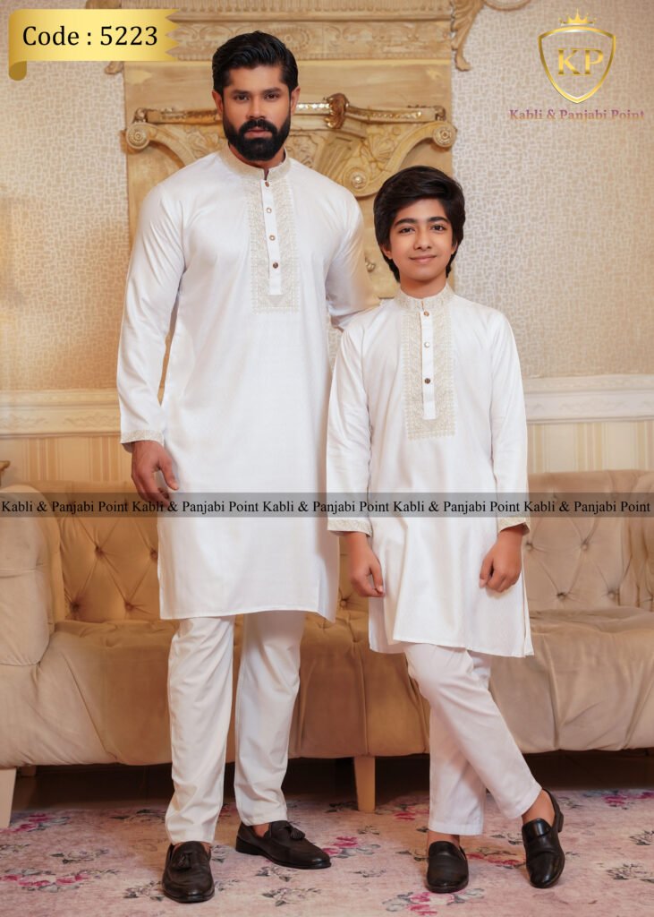 Luxury Embroidery Kids Panjabi – White